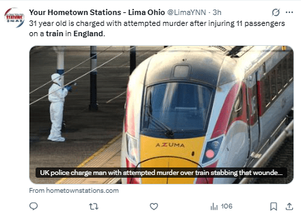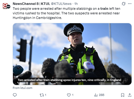 Regeneración, 3 de noviembre 2025– Un hombre identificado como Anthony Williams, de 32 años y ciudadano británico residente en Peterborough, ha sido acusado de diez cargos de intento de asesinato tras un apuñalamiento múltiple cometido el sábado a la tarde en un tren en Inglaterra.