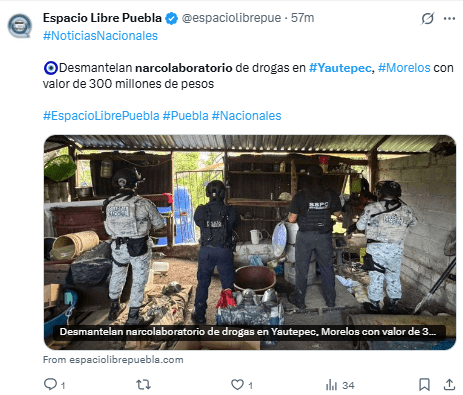 “Este narcolaboratorio operaba por una organización criminal que pertenece a ‘Los Linos’ y trabaja tanto en Yautepec como en Jiutepec”, informó.