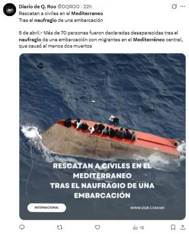 Regeneración, 7 de abril 2026– Más de 70 individuos fueron reportados como desaparecidos tras el hundimiento de un barco con migrantes en el Mediterráneo central, que dejó al menos dos muertos, informaron este domingo en X las oenegés Mediterranea Saving Humans y Sea-Watch.