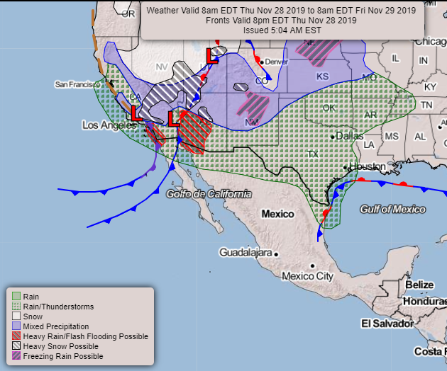 El Servicio Meteorológico Nacional agregó que en las entidades mencionadas habrá rachas de viento superiores a los 80 kilómetros por hora y el oleaje elevado en costas de esa región del país, incluido el Golfo de California.