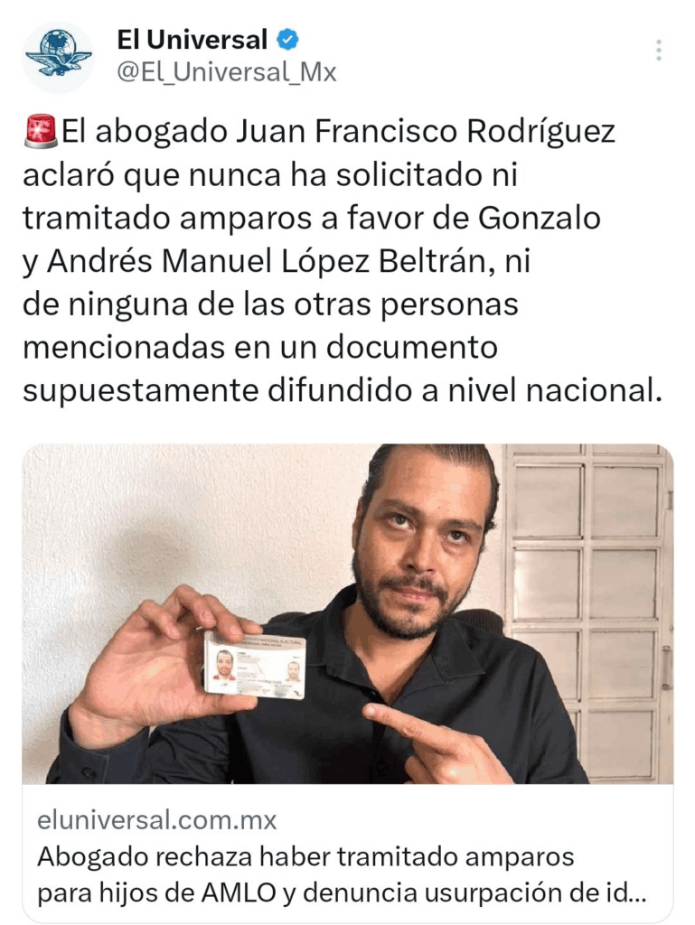 Al tiempo que Manuel López Beltrán, emitió un comunicado desmintiendo la especie.
