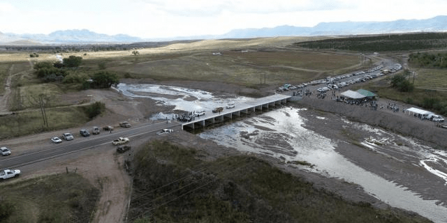 En el lugar, dos camionetas pickup pasaron por un vado, y las arrastró la corriente.