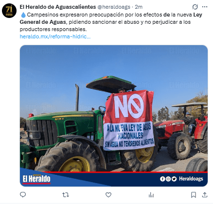 Regeneración, 25 de noviembre 2025– «Tras las recientes movilizaciones y bloqueos encabezados por grupos de agricultores, Ricardo Monreal anunció que se modificará la iniciativa de Ley General de Aguas presentada por la Presidenta con la intención de atender sus demandas. Esto es un error».