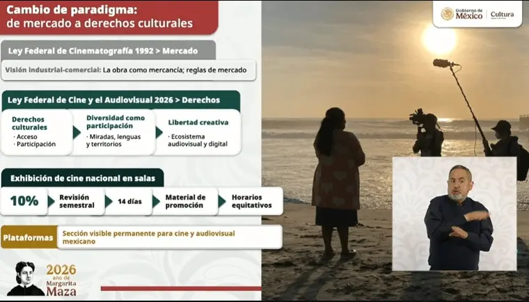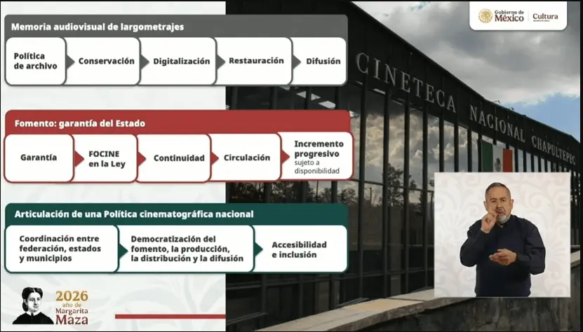 Además, se articula una política cinematográfica nacional en coordinación entre la federación, estados y municipios para democratizar el fomento, la producción, la difusión y la distribución en todo el territorio.