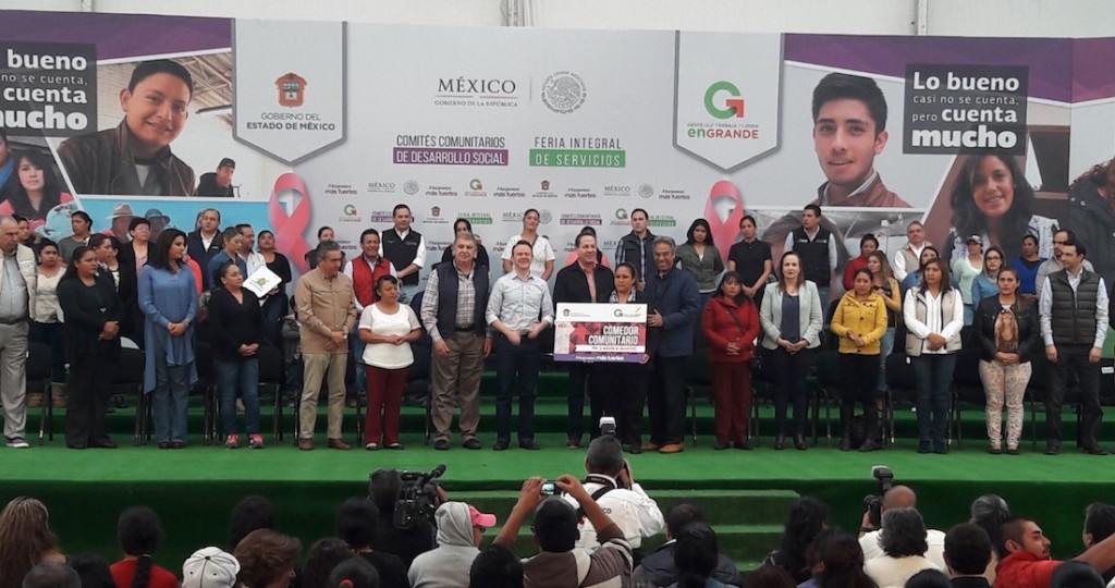 Ante al menos 5 mil personas, el jefe de la Oficina de la Presidencia, Francisco Guzmán y el Gobernador del estado, Eruviel Ávila Villegas, encabezaron el acto donde repartieron 4 mil 700 tarjetas Efectiva, con 2 mil 750 pesos cada una y cerca de 6 mil despensas Diconsa.