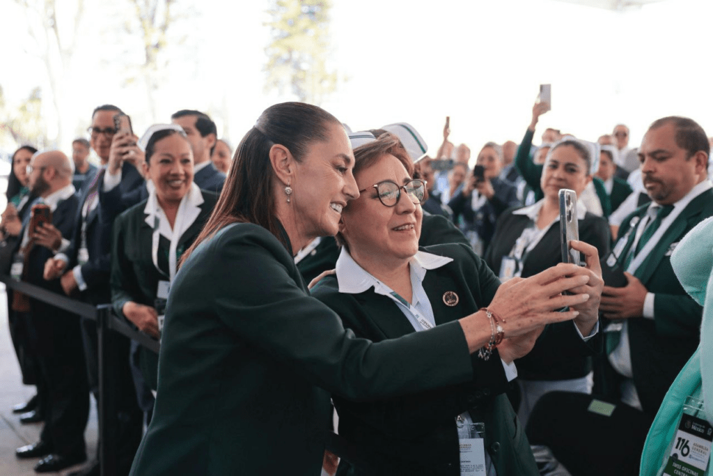 Regeneración, 10 de diciembre de 2025. Sheinbaum celebra vocación e historia de personal del IMSS desde Puebla y encabezó la 116 Asamblea General del Instituto Mexicano del Seguro Social (IMSS).
