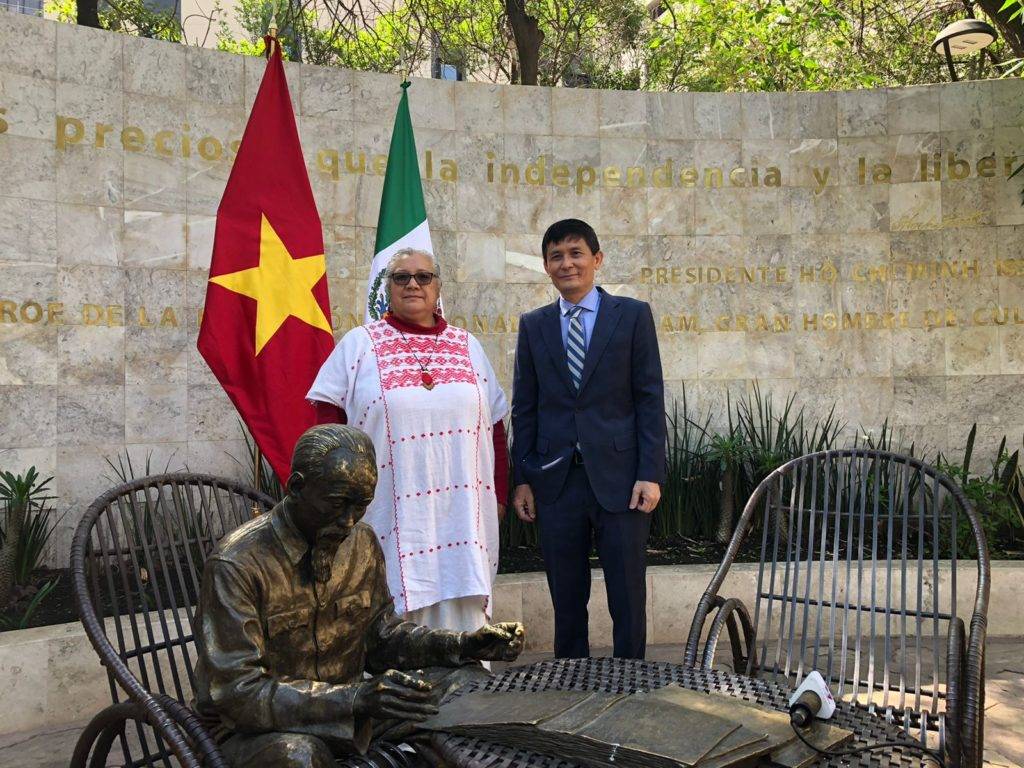 La delegación fue recibida por el embajador de Vietnam en México, Nguyen Hoành Nam, quien habló junto con Martha Alvarado Garcia, miembro del CEN de Morena y Secretaria de Mexicanos en el Exterior y Asuntos Internacionales. Estuvo presente y también habló el escultor del monumento Pedro Ramirez Ponzanelli.