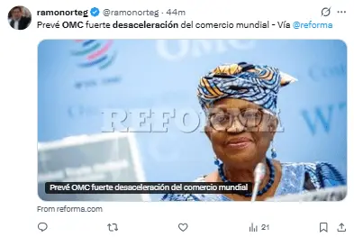 Esto fue señalado el jueves por la directora general de la Organización Mundial del Comercio, Ngozi Okonjo-Iweala.