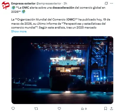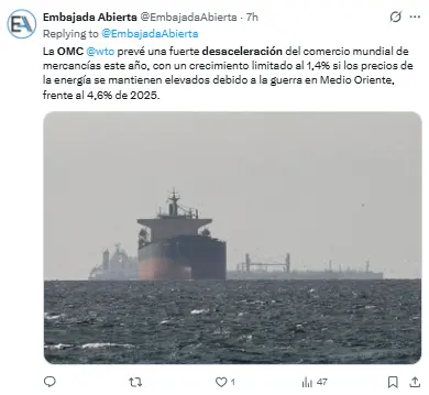Sin embargo, en el segundo caso, la OMC indica que la previsión de comercio global para 2026 crecería solo un 1,4%.