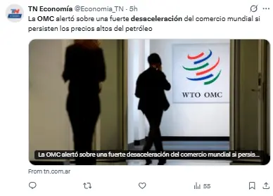 En este sentido, los economistas de la OMC ajustaron sus estimaciones y plantearon dos escenarios debido a la incertidumbre del conflicto.
