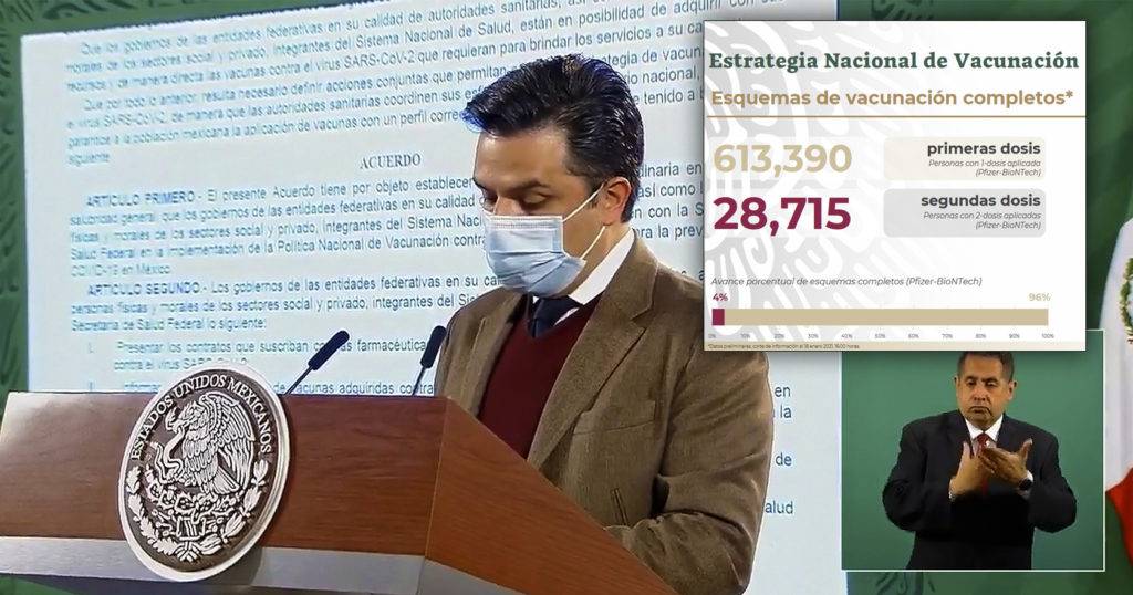 Regeneración, martes 26 de enero, 2021. El director del Instituto Mexicano del Seguro Social (IMSS), Zoé Robledo informó que el Grupo Técnico Científico de Aplicación de Vacunas publicó una recomendación que avala la aplicación de la segunda dosis de Pfizer/BioNTech entre 21 a 42 días. Por Dante García Berlanga, @limpicatto.