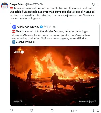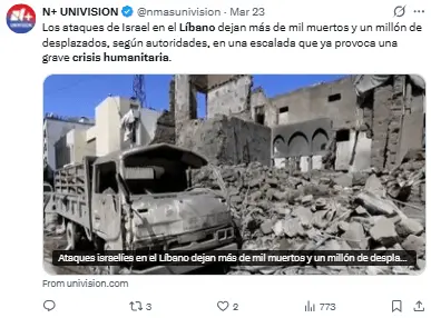 Regeneración, 28 de marzo 2026– Líbano está al borde de una «crisis humanitaria», según alertó la Agencia de la ONU para los Refugiados (ACNUR), ya que Israel ha aumentado sus bombardeos y su invasión terrestre en el país, que comenzó hace un mes.