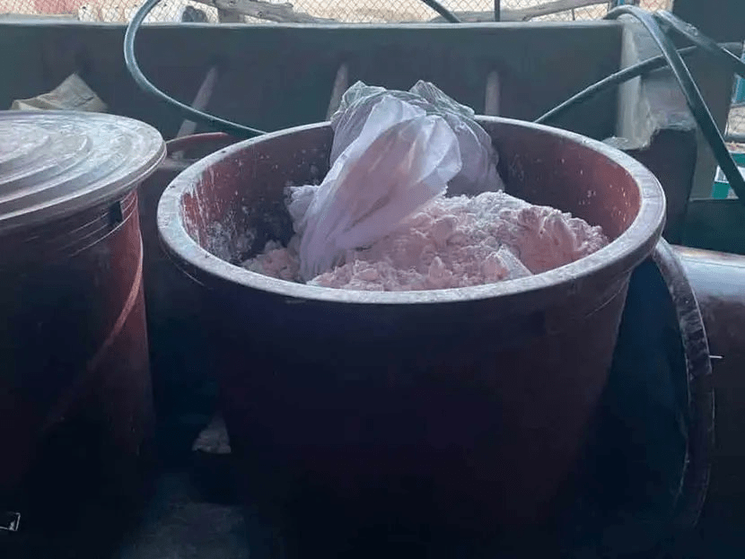 Al tiempo que se precisa que en el lugar se incautaron 8 mil 400 litros y mil 725 kilos de sustancias químicas.