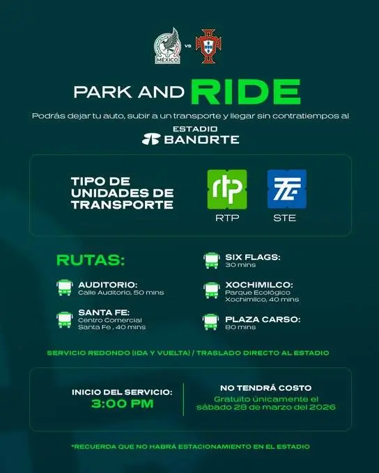 El acceso al estadio priorizará totalmente el uso del transporte público masivo para evitar saturaciones viales en la zona sur. No habrá disponibilidad de estacionamiento para autos particulares, por lo que se recomienda utilizar las alternativas de transporte del gobierno.