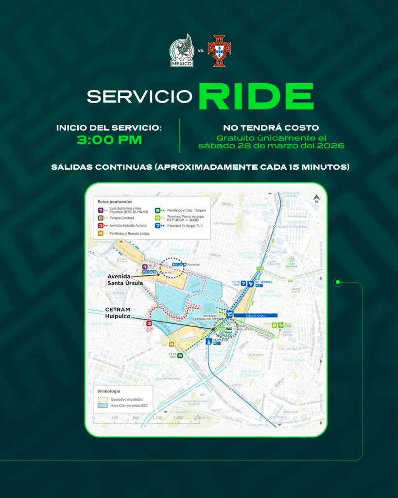 Ulises García Nieto presentó un plan integral que incluye rutas especiales desde puntos de alta concentración como Polanco y Reforma. Se habilitarán cinco nodos de conexión gratuita para facilitar el traslado de los aficionados hacia la sede del encuentro deportivo.