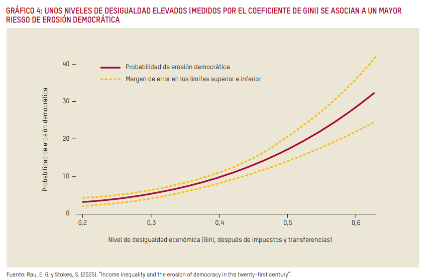 Las democracias son siete veces más frágiles en países con alta desigualdad. La falta de oportunidades genera una desafección política que se traduce en ira social. Franc Cortada afirma que los ricos no solo compran yates, sino también democracias. La ayuda al desarrollo ha sufrido recortes por parte de los principales países donantes.