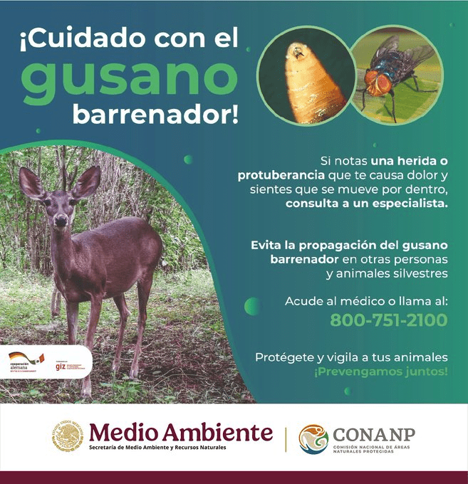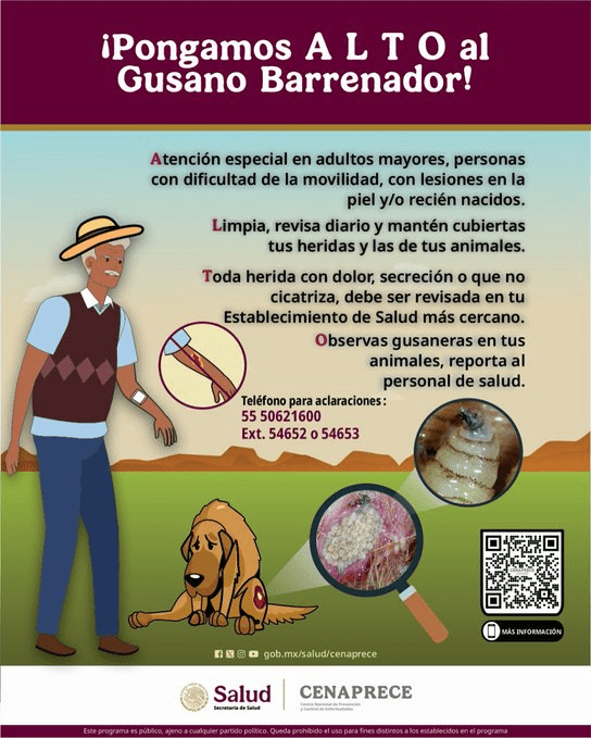 De hecho, al 28 de julio, el Sistema Nacional de Vigilancia Epidemiológica (Sinave) reportó 33 casos confirmados de miasis (infestación de larvas) de gusano barrenador en personas.