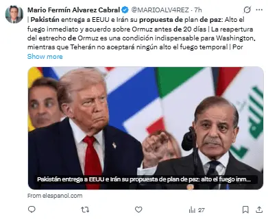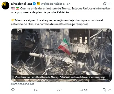 Regeneración, 6 de abril 2026– Los negociadores estadounidenses e iraníes han recibido ya la propuesta para una solución negociada del conflicto y la reapertura acordada del estrecho de Ormuz, según informan los mediadores pakistaníes.