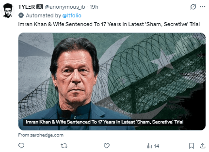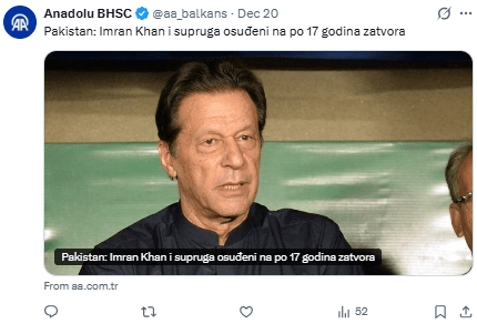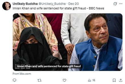 «El tribunal anunció la sentencia sin escuchar a la defensa y condenó a 17 años de prisión a Imran Khan y Bushra Bibi con fuertes multas».