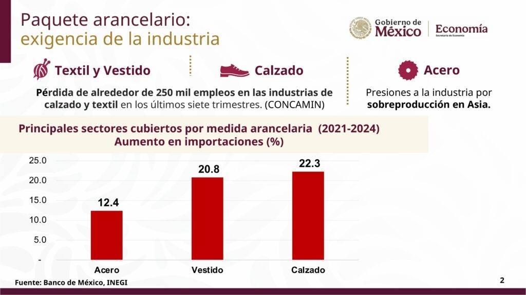 Asimismo, señaló que con el paquete arancelario se estima una recaudación de alrededor de 30 mil millones de pesos anuales.