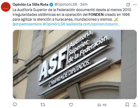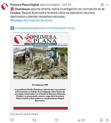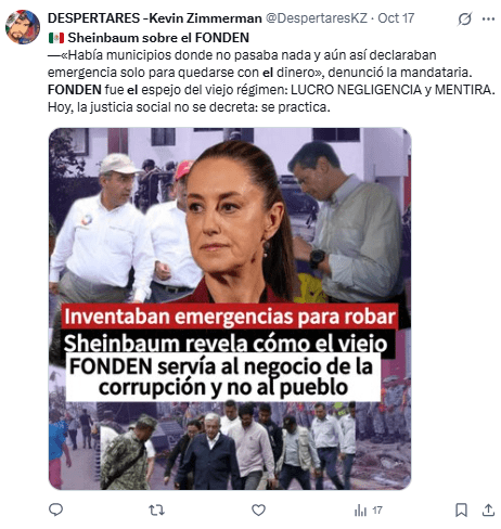 «Es tiempo de recordar qué fue realmente el Fondo Nacional de Desastres antes de que la nostalgia mediática reinvente un pasado que nunca existió», empieza el texto.