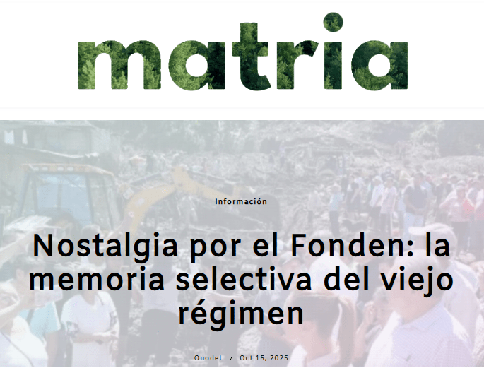 Regeneración, 23 de octubre 2025– Matria, el órgano informativo de la Organización Nacional de Comités de Ordenamiento y Defensa del Territorio (ONODET), publicó el 15 de octubre un artículo sobre el tan mencionado Fonden. Compartimos una breve reseña.