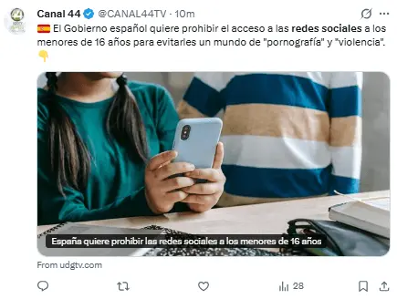 Pedro Sánchez restringirá acceso a redes a menores de 16 años. Se establecerá como delito la manipulación de algoritmos y promoción ilegal