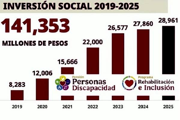 Del 2019 a 2025, se ha destinado una inversión social de 141 mil 253 millones de pesos.
