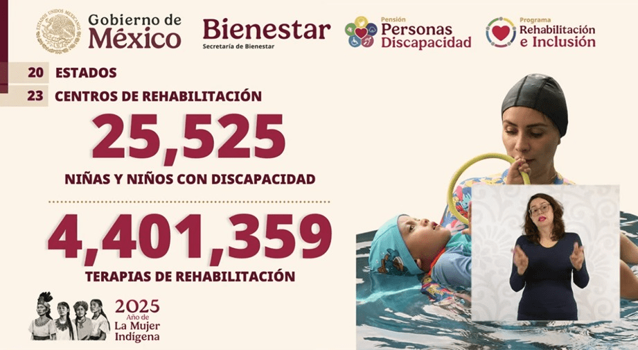 Cabe destacar, 4 millones 401 mil 359 terapias a 25 mil 525 niñas y niños con discapacidad en dicha institución.