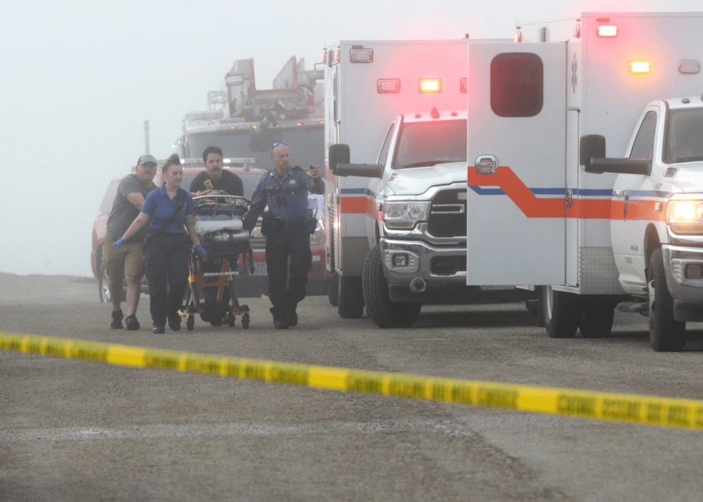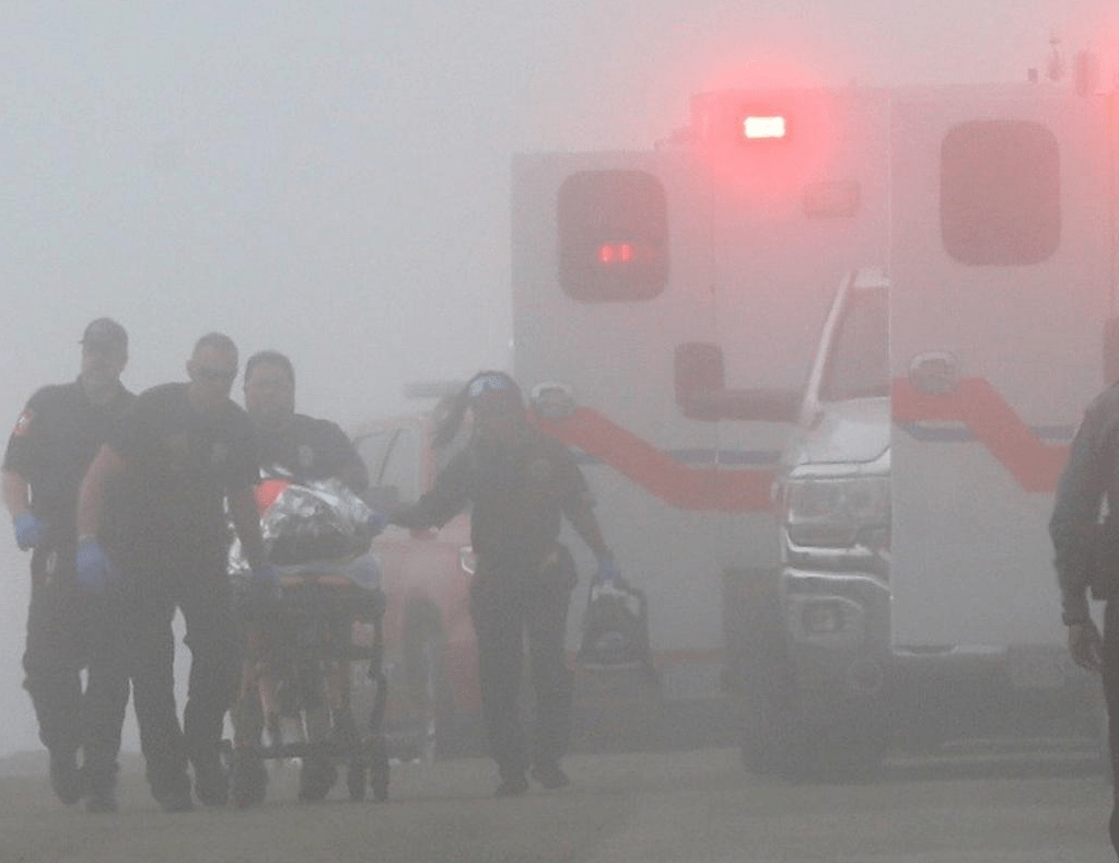 El personal de emergencia recorrió la bahía bajo una capa espesa de neblina para hallar a los tripulantes.