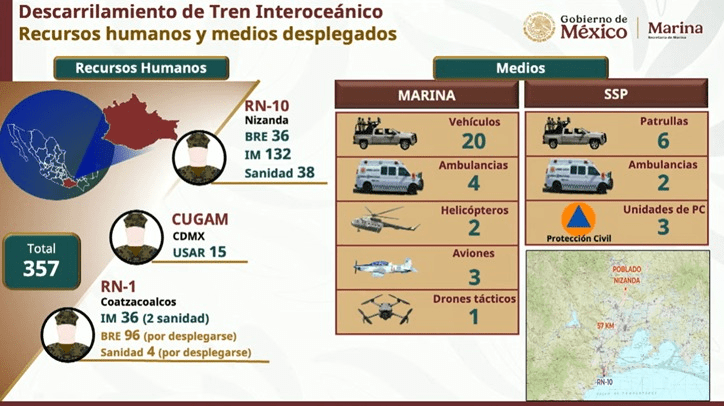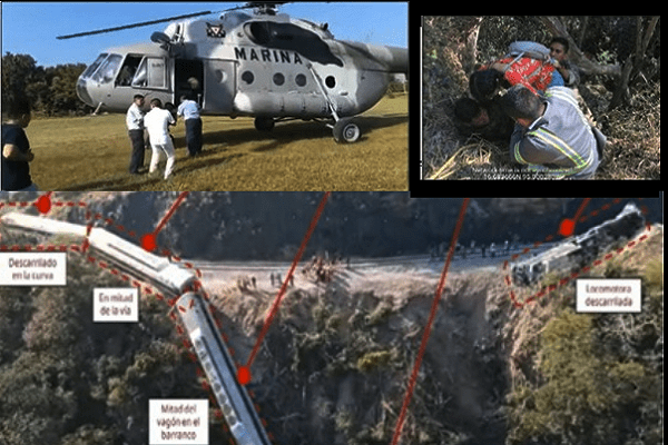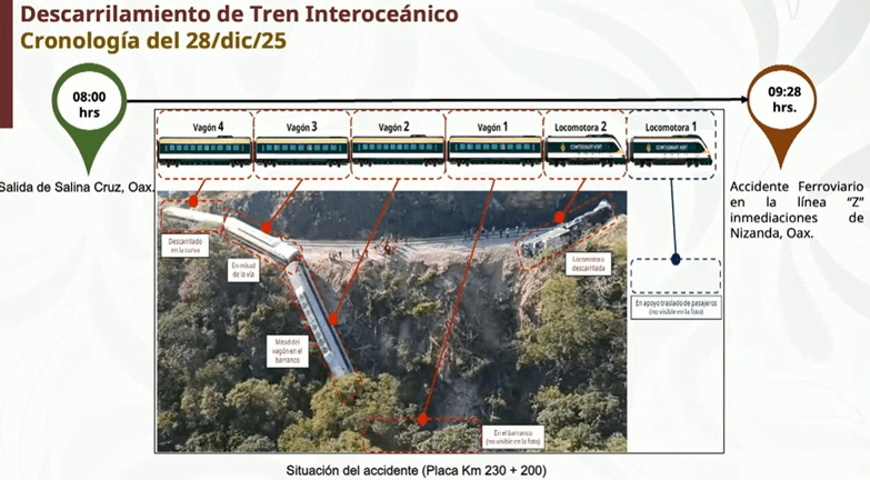 Como se indica se trata del tren del Corredor Interoceánico del Istmo de Tehuantepec, en el que viajaban 250 personas.