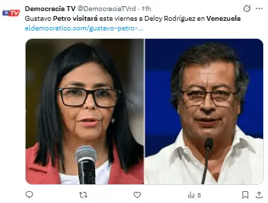 El viernes, Petro fue recibido por Delcy Rodríguez, presidenta interina de Venezuela, en el Palacio Presidencial de Miraflores, en Caracas.