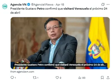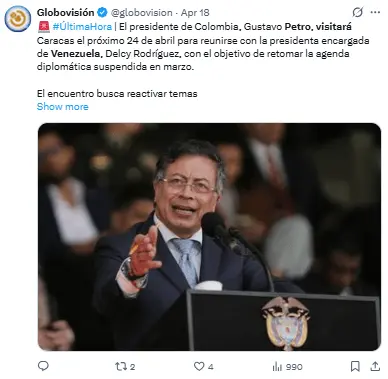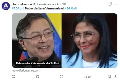 Regeneración, 24 de abril 2026– El mandatario colombiano, Gustavo Petro, ha sido el primer líder internacional en llegar a Venezuela desde que el ejército estadounidense capturara a Nicolás Maduro el 3 de enero.