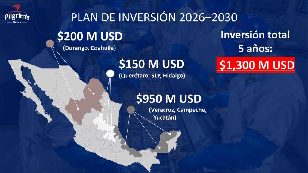 Regeneración, 15 de enero 2026– Este jueves, el Gobierno de México anunció que la empresa avícola Pilgrim’s realizará una inversión de 1.300 millones de dólares, la cual abarcará diversas regiones del país y generará 4.000 empleos directos durante los próximos cinco años.