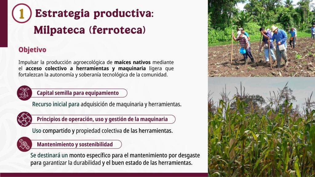 Detalló que lo que se busca es impulsar la producción agroecológica de maíces nativos mediante el acceso colectivo a herramientas y maquinarias.