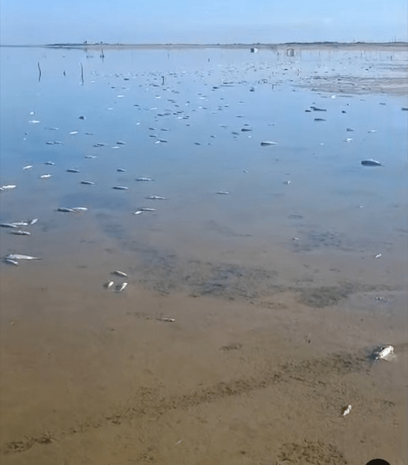 La Laguna Madre se asfixia: muerte masiva de peces y crustáceos. Filmarán documental en Playa Bagdad sobre daños a costas por basura espacial