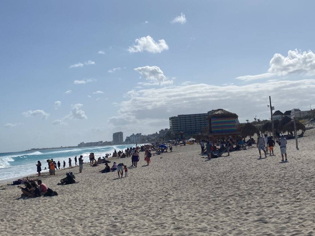 Las playas de Cancún se encuentran abarrotadas por bañistas nacionales y extranjeros que después de medio día comenzaron a llegar.