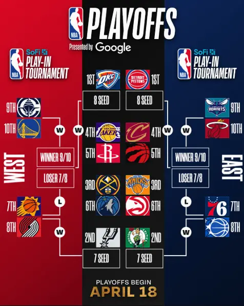 Después de que termine el torneo play-in el viernes, los playoffs iniciarán con cuatro juegos el sábado.