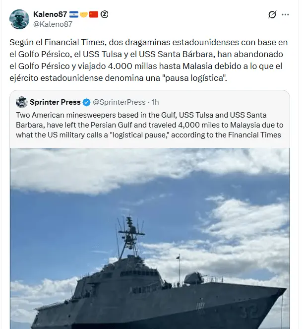 Cabe recordar que Trump pidió escoltar a los buques petroleros para forzar a Irán a dejarlos pasar por el Golfo Pérsico.