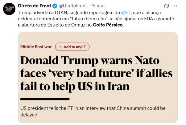 Regeneración, 16 de marzo de 2026. Varios países de la coalición con Estados Unidos han declinado de diversas maneras enviar buques de guerra al estrecho de Ormuz.