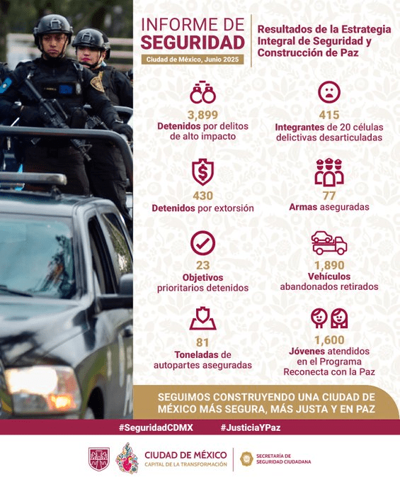 Regeneración, 16 de junio de 2025. En redes destacan que personal de la Secretaría de Seguridad Ciudadana (SSC) de la Ciudad de México, tomó conocimiento de tres sujetos incendiarios.