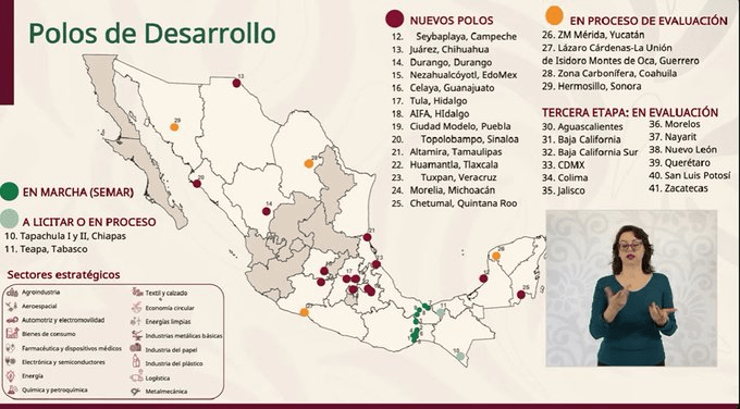 E incluso se reveló que los cuatro polos en proceso de evaluación están ubicados en Yucatán, Guerrero, Coahuila y Sonora.