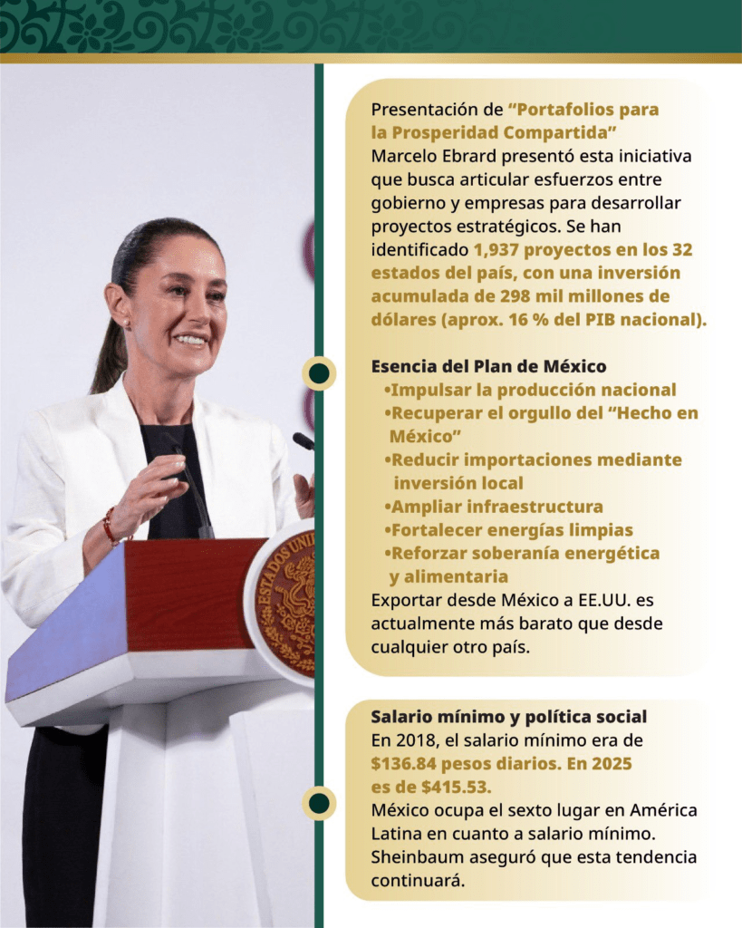 Regeneración 24 de abril de 2025. Durante las Mañaneras del Pueblo con la presidenta Sheinbaum se presentó el Portafolio para la Prosperidad Compartida del Plan México con 937 proyectos.