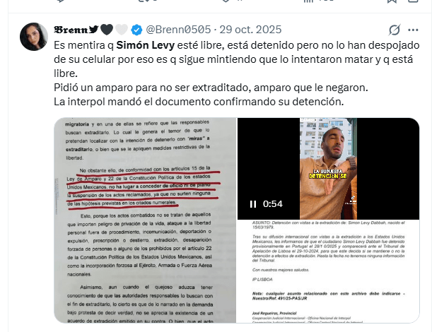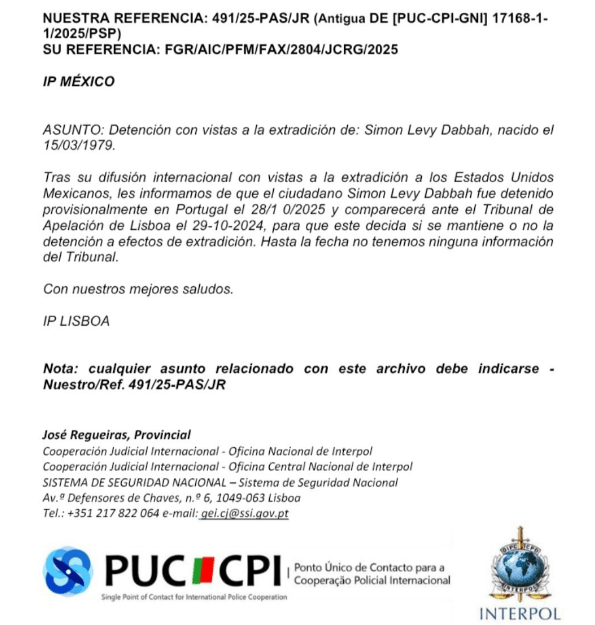 En octubre de 2025, autoridades de México informaron que Levy se encontraba en Portugal, donde enfrentaba un procedimiento relacionado con una solicitud de extradición.