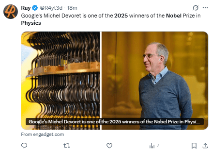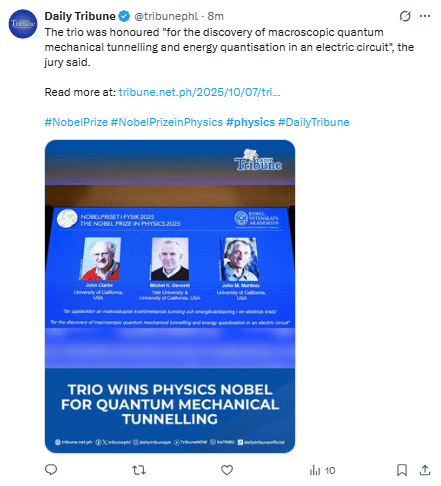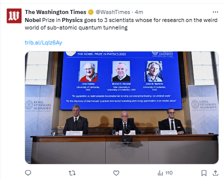 Regeneración, 7 de octubre 2025– El Premio Nobel de Física 2025 fue otorgado el martes a John Clarke, Michel H. Devoret y John M. Martinis por el descubrimiento del efecto túnel mecánico cuántico macroscópico y la cuantificación de la energía en un circuito eléctrico.