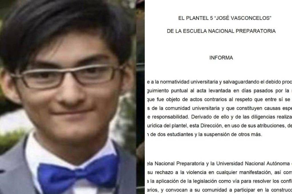 Regeneración, 14 de noviembre de 2020.  La Escuela Nacional Preparatoria José Vasconcelos de la UNAM expulsó a dos estudiantes involucrados en la broma contra Jorge Barrera.