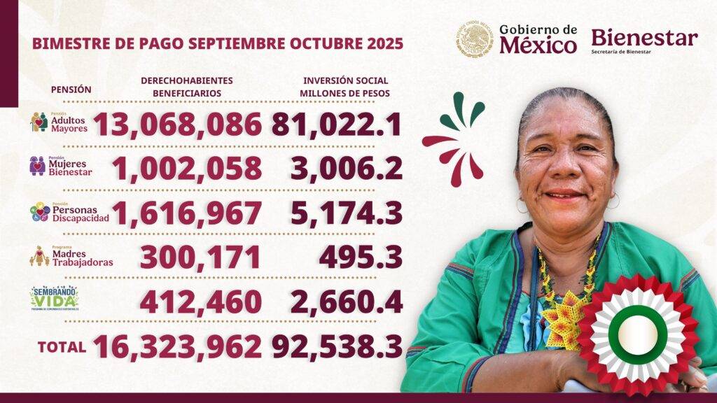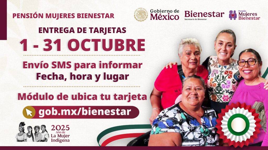 Por otra parte, en las Mañaneras del Pueblo con Sheinbaum, se detalló que del 1 al 31 de octubre entrega de tarjetas para la Pensión Mujeres Bienestar
