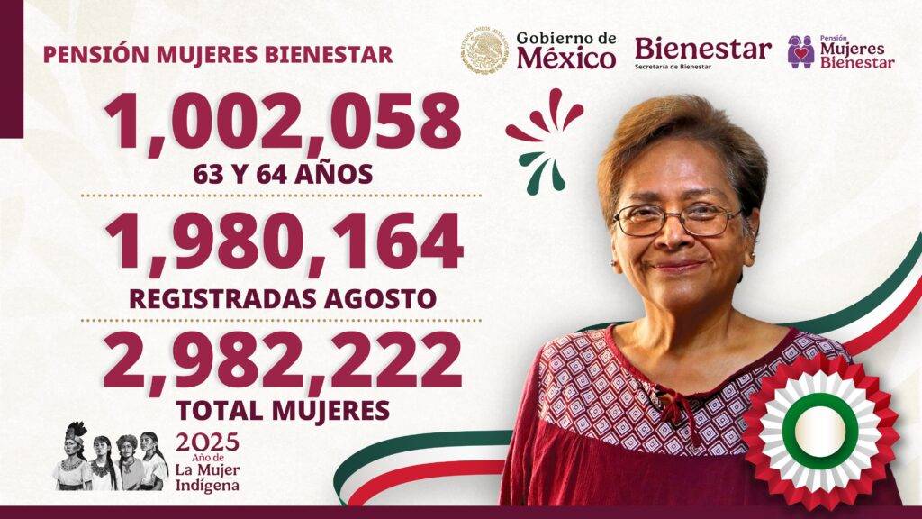 Dicha tarjeta a un millón 980 mil 164 mexicanas de 60 a 64 años que se registraron en agosto para recibir este apoyo.