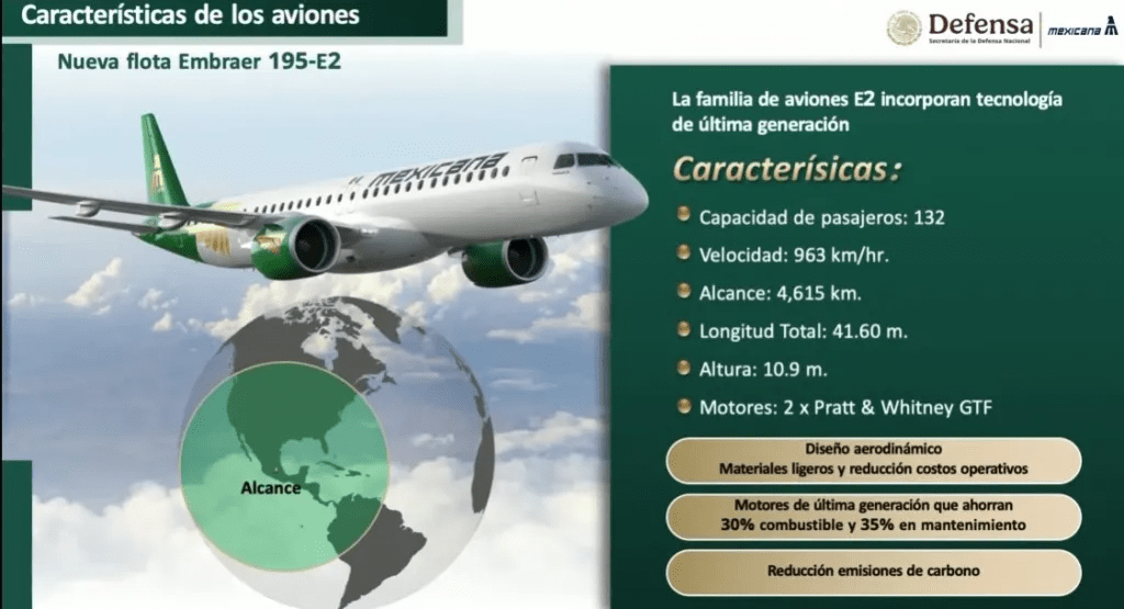 Detalló que los 20 aviones Embraer E195-E2 que recibirá Mexicana de Aviación llegarán de manera paulatina.