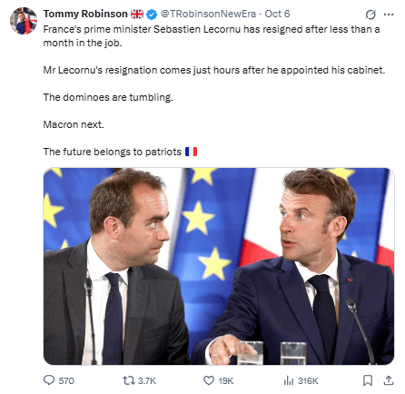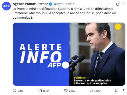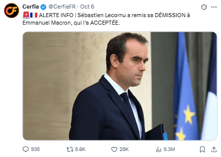 La renuncia de Lecornu se produce 13 horas después de que se nombrara ayer la composición de un Gobierno que él llevaba trabajando desde su propio nombramiento.